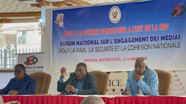 Les médias congolais s’engagent à promouvoir la paix, la sécurité et la cohésion nationale face à l’agression à l’Est de la République Démocratique du Congo. Cet engagement a été pris lors d’un forum organisé par “Journaliste en danger” (JED) et l’Union Nationale de la Presse du Congo (UNPC), le lundi 10 mars 2025, à Béatrice Hôtel.