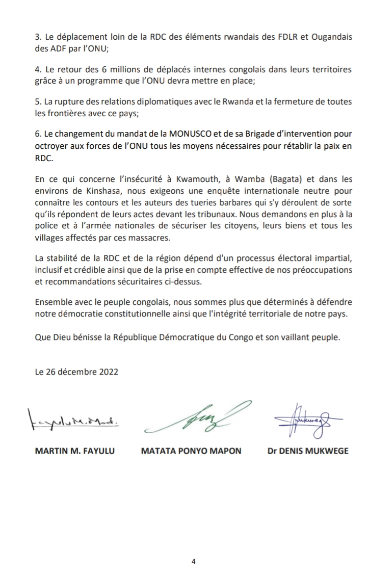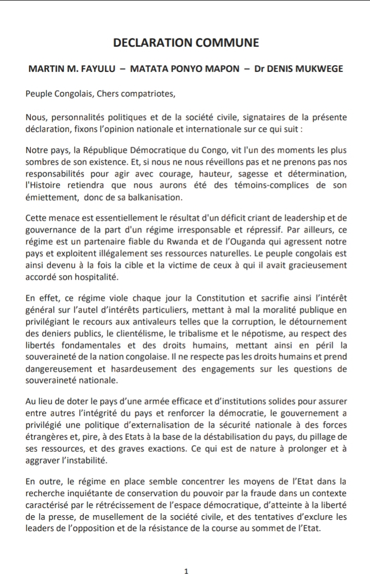 in A La Une, Actualités, Politique Élections 2023 : Fayulu, Matata et Mukwege font bloc contre Félix Tshisekedi (Déclaration) par ENN 26 décembre 2022, 10h06 2.1k Vues 15shares Facebook Twitter Pinterest LinkedIn 15shares Facebook Twitter Pinterest LinkedIn See more Article précédent RDC : JP Lihau promet l’intégration de 100 000 fonctionnaires dans le fichier de paie l’année prochaine Prochain article OHADA : la RDC prend officiellement la présidence What do you think? 0 points Upvote Downvote Browse and manage your votes from your Member Profile Page Edité par Elie Ngandu est un journaliste congolais travaillant depuis plus de trois ans pour le média en ligne lisapo.info à Kinshasa. Comments Our site Facebook Laisser un commentaire Annuler la réponseVotre adresse e-mail ne sera pas publiée. Les champs obligatoires sont indiqués avec *Commentaire * Nom * E-mail * Site web Enregistrer mon nom, mon e-mail et mon site dans le navigateur pour mon prochain commentaire. By using this form you agree with the storage and handling of your data by this website. * Loading… 0
